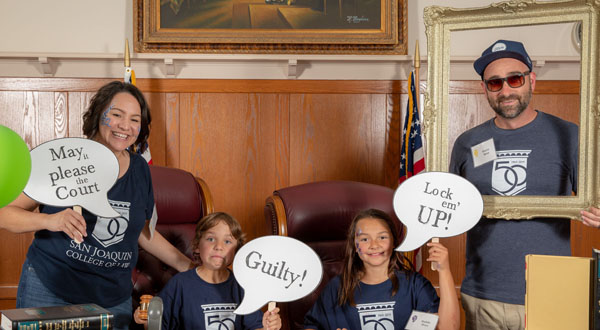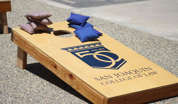 About 200 friends, alumni, faculty and staff of San Joaquin College of Law played and picnicked in the park on May 11th as part of the Law School’s year-long 50th Anniversary Celebration. There was fierce competition in the cake walk and corn hole contests, hilarious courtroom shoots, and a kids area with everything from bowling and bocce to face painting and balloon headgear.