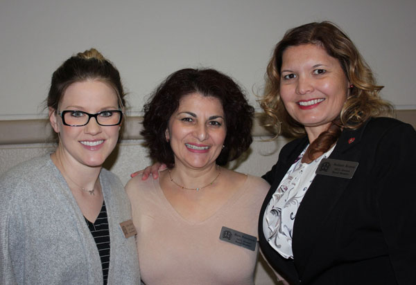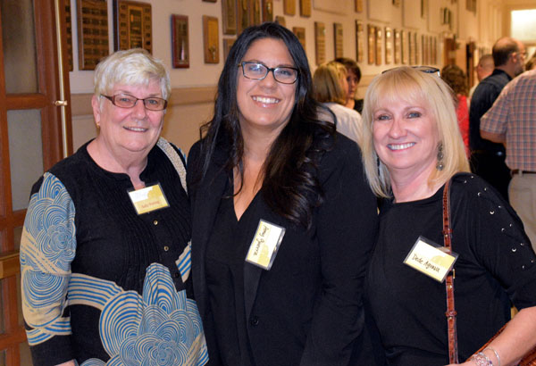 Former SJCL professor Sally Perring, Fresno Superior Court Judge Amy Guerra, and Dede Agrava share a moment.