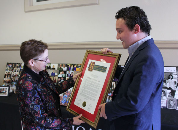 Tax Professor Dave Camenson accepts a plaque for 25 years of service. He thanked “the U.S. Congress for adopting the IRS Code. Otherwise, I wouldn’t be here.”