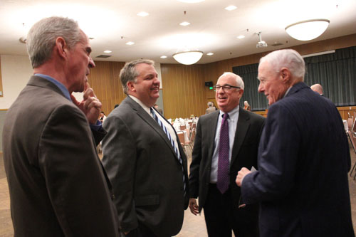 Hon. Jonathan Conklin, Hon. Stanley Boone, Hon. Herbert Levy, and Hon. Oliver Wanger have a pre-luncheon discussion